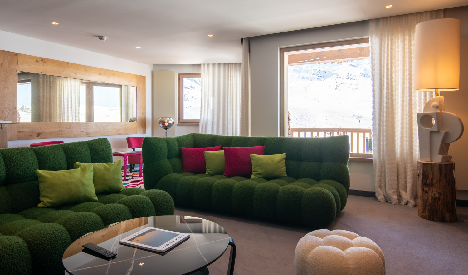 Un séjour grandiose dans un espace spacieux et accueillant, alliant confort et raffinement, pour créer des souvenirs chaleureux au cœur des montagnes.